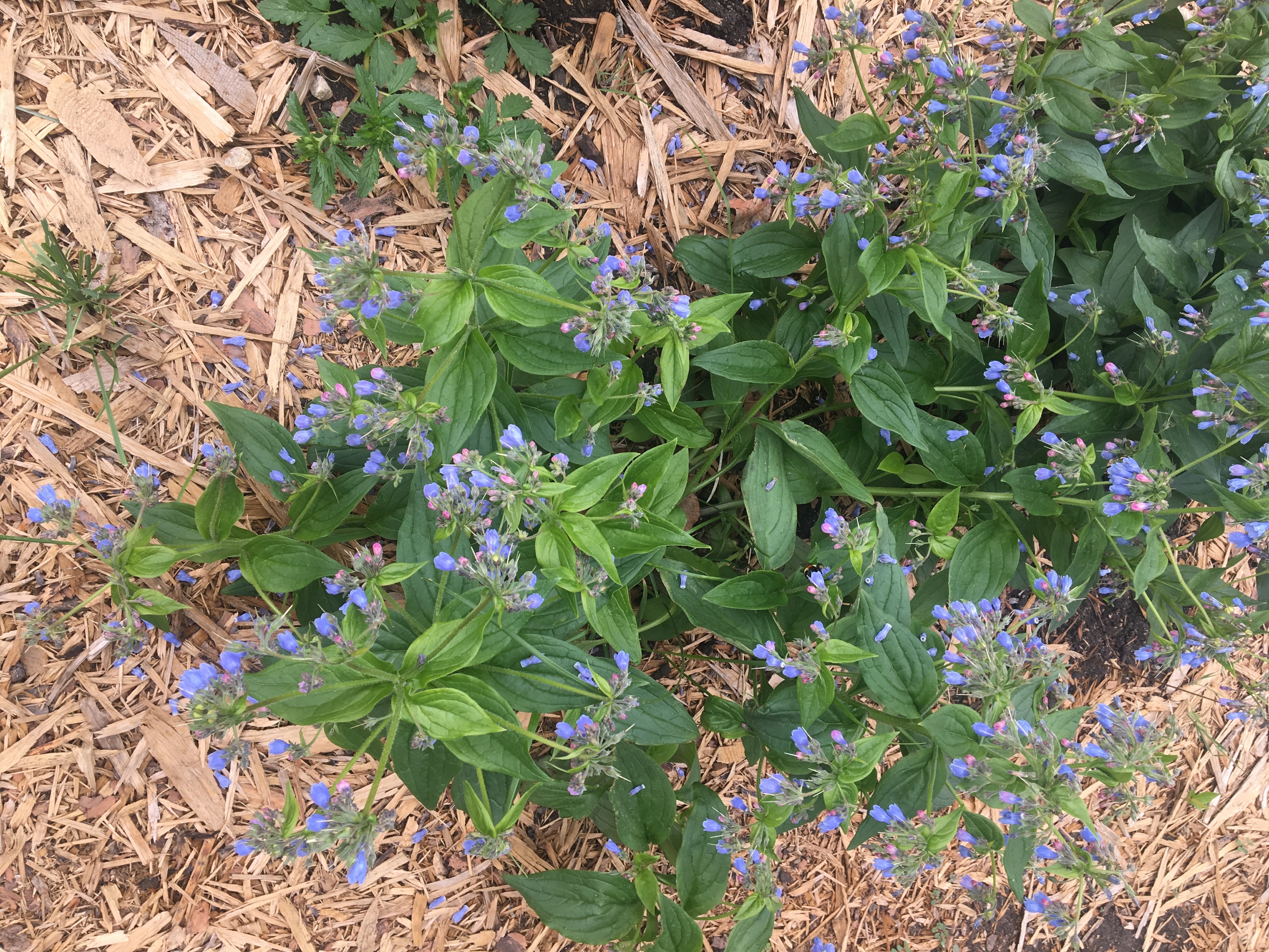 There are many types of blue bells. The type in our garden is known as Lungwort, king's plant, and chiming bells. Its leaves are quite large. Maria told us to plant them in groups of about five because that's how they grow in the wild. She used to gather them for her grandmother when she was a little girl. (Campbell, 2018) We planted some around the circle gathering place, at shoulder level at the brick wall.